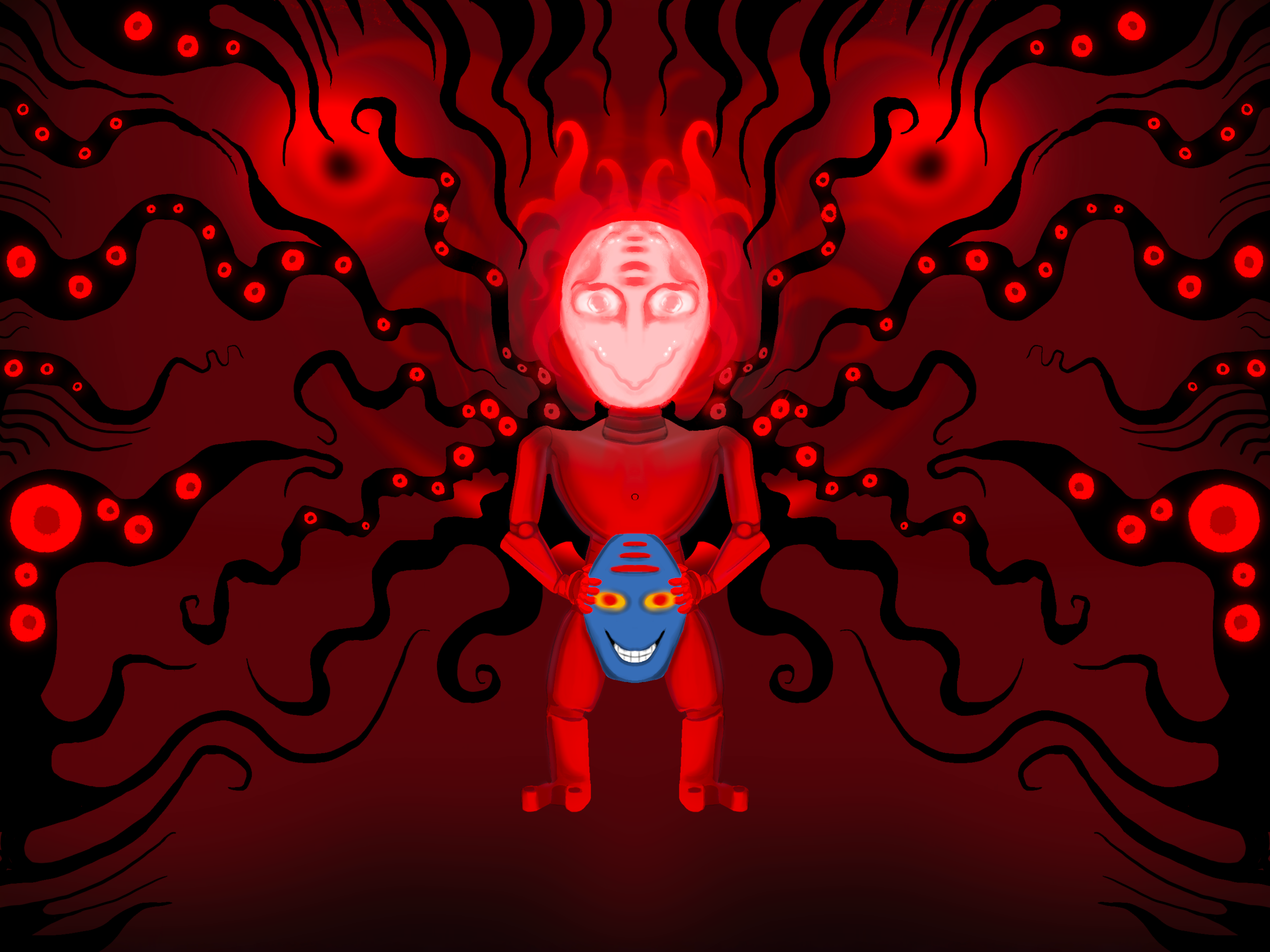 Visokki oli jälleen joka suuntaan silmänkantamattomiin levittäytyvällä suola-aavikolla, mustan auringon värit nielevän, ahdistavan porotuksen alla. Hän näki sen keskellä, suoraan hänen edessään, kyhjöttävän Punaisen Miehen sekä tämän siniset kasvot. Hitaalla liikkeellä tämä poimi mainitut kasvot ja veti ne pois niiden peittämän todellisuuden tieltä.